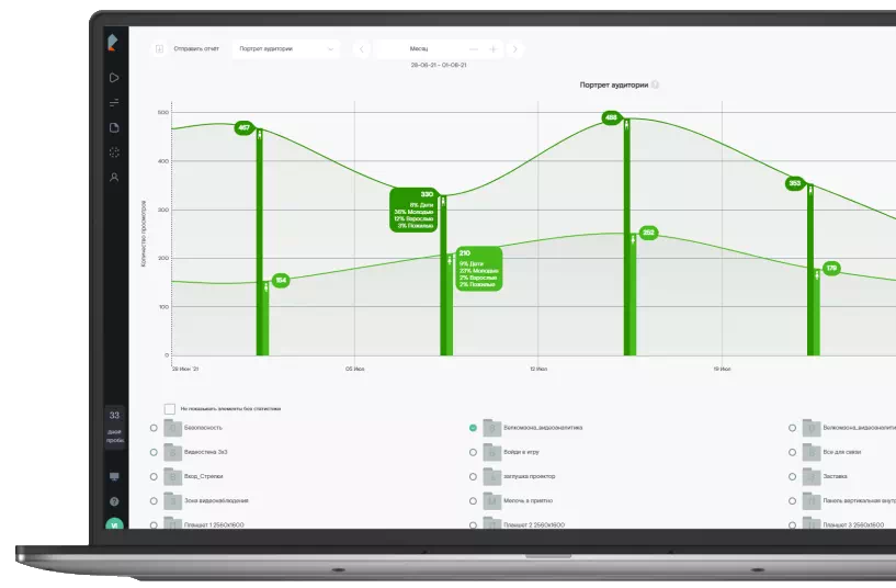 Дополните модулем видеоаналитики экраны внутри точки продаж или ТЦ и таргетируйте контент в зависимости от пола и возраста проходящих людей